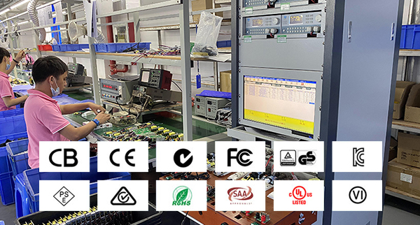 公司產(chǎn)品已通過多項國際和國內(nèi)權(quán)威認證,包括:ISO9001質(zhì)量管理體系認證;中國CCC認證;歐盟CB認證、CE認證GS認證、RoHS認證;美國FCC認證、ETL認證、UL認證(UL1310標準、UL60065標準、UL60950-1標準);日本PSE認證;韓國KC認證、KCC認證;印度BIS認證